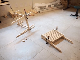 Mousse polyuréthane expansée, Tasseaux de pin, Acier laqué