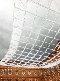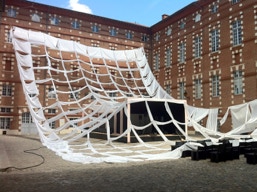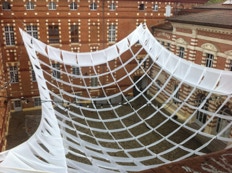 Cordes plastique, Toile diffusante polyester, Contreplaqué, Pin, Filet, Sol PVC.